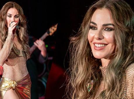 Defne Samyeli, Kıbrıs Merit Park Letafet'de sahne aldı. Altın renkli derin yırtmaçlı transparan elbise tercih eden Samyeli, sahne öncesi basın mensuplarının sorularını yanıtladı.