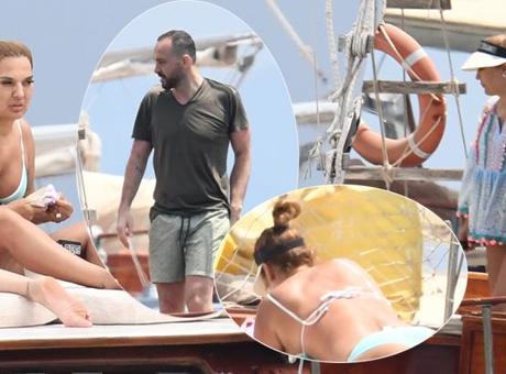 Demirledikleri Akvaryum Koyu'nda yemek yiyen grup, daha sonra sonra teknenin üst kısmına geçip güneşlenmek istese de yağmur engeline takıldı. Bikinisinin üzerine giydiği plaj elbisesini çıkaran şarkıcının kilo aldığı görüldü.