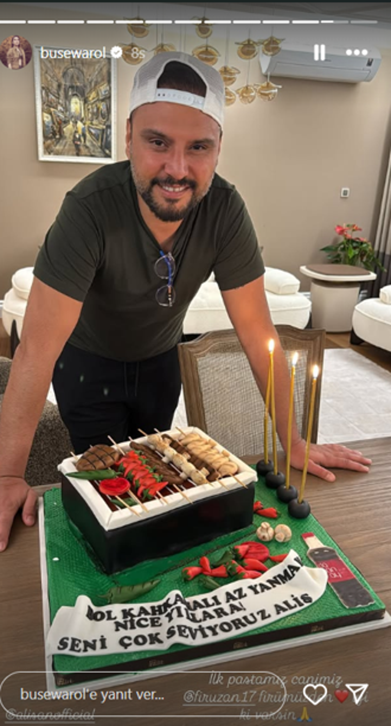 Buse Varol'un eşi için hazırlattığı pasta en çok dikkat çeken detay oldu. Mangal üzerinde pişen etler ve yanında duran şalgam suyu şişesinden oluşan pastaya yorum yağdı.
