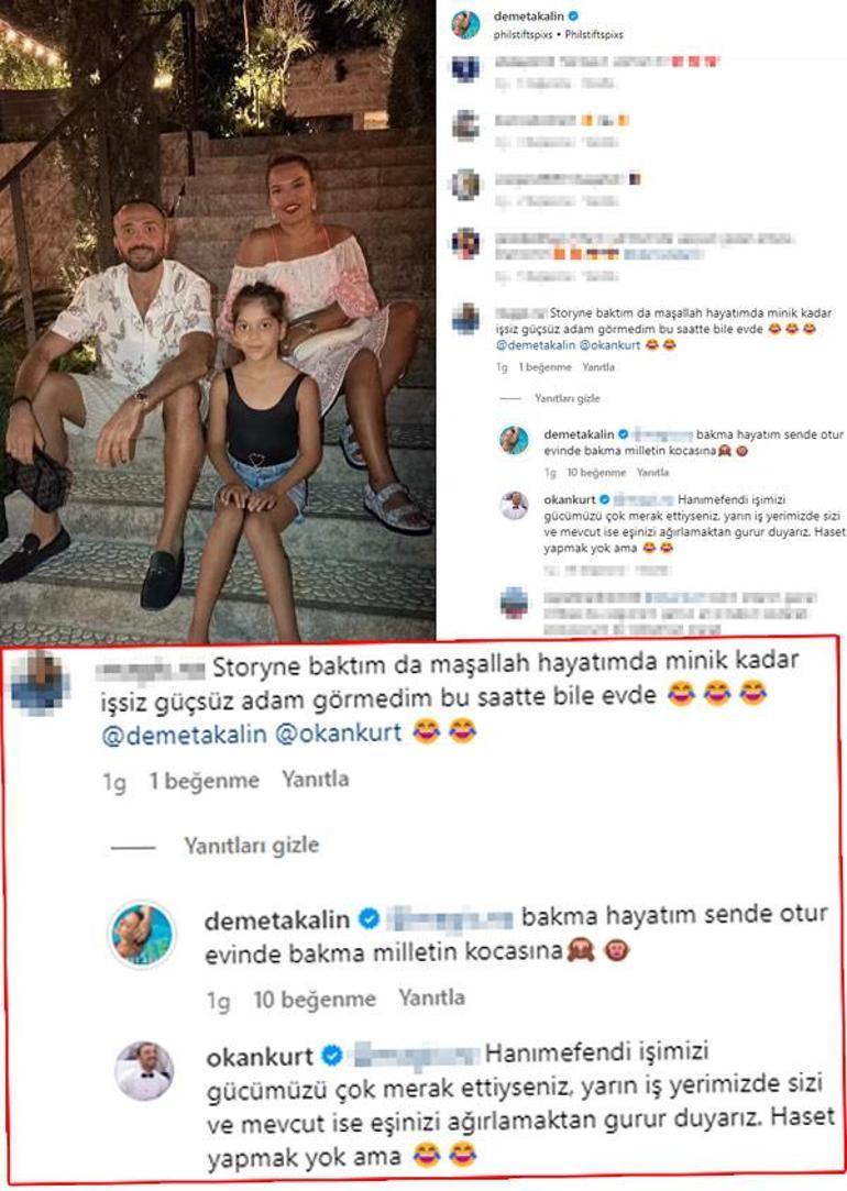 Ünlü isim, hayat arkadaşı Okan Kurt ve kızları Hira'nın görüntülerinin yer aldığı bir videoyu da sosyal medyada paylaştı. Bir takipçisinin, "Story'ne baktım da maşallah hayatımda 'minik' kadar işsiz güçsüz adam görmedim. Bu saatte bile evde. (Demet Akalın, hayat arkadaşı Okan Kurt'a 'minik' diye sesleniyor)" mesajı dikkat çekti.