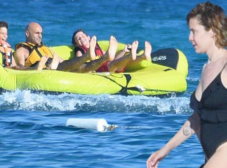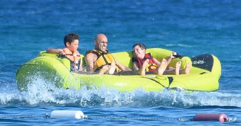 Yolculuğun sonlarına doğru heyecanını yenmeyi başaran oyuncu, su taşıtının keyfini geç de olsa çıkarmaya başladı. Denizin ortasında son hız giden ancak bununla yetinmeyen aile, daha sonra su scooteri ile gezdi.