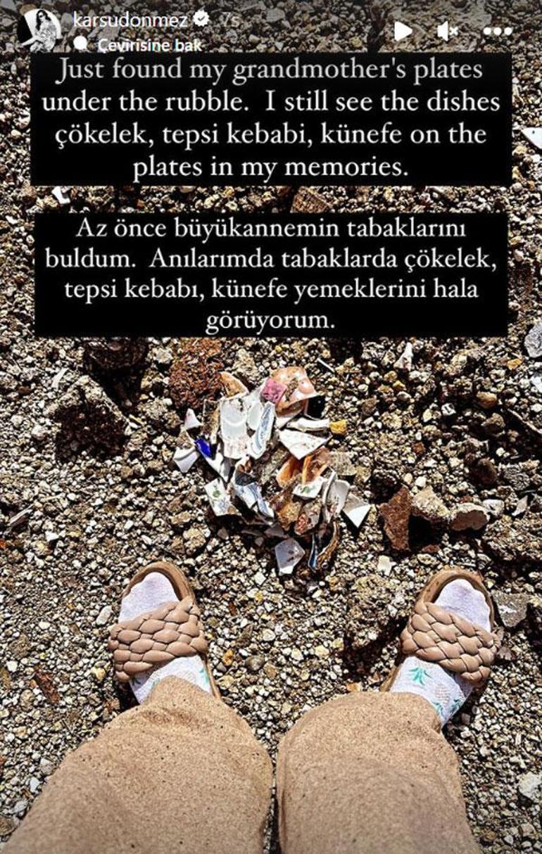 Ünlü isim, depremde kaybettiği büyükannesinin evinin olduğu sokağa gittiğinde büyük bir şok yaşadı. Yıkılan evin arsasında büyükannesinin kırılmış tabakların parçalarını gören Karsu, duygularını Instagram hesabından yaptığı bir paylaşımla dile getirerek şu ifadeleri kullandı: