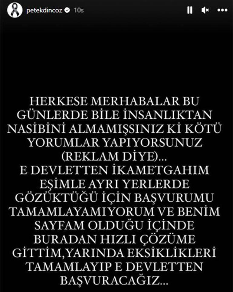 Petek Dinçöz, resmi makamlar üzerinden başvuru yapmak yerine böyle bir yolu tercih ettiği için gelen tepkiler üzerine yeni bir paylaşımda bulundu.