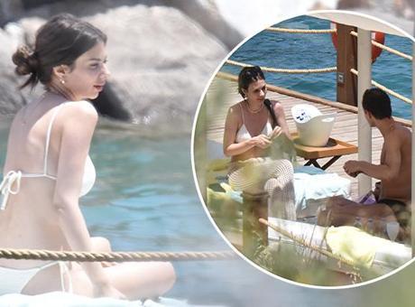 Kısa bir süre iskelede güneşlenen 27 yaşındaki ünlü isim daha sonra arkadaşlarının yanına geçerek koyu sohbete daldı.