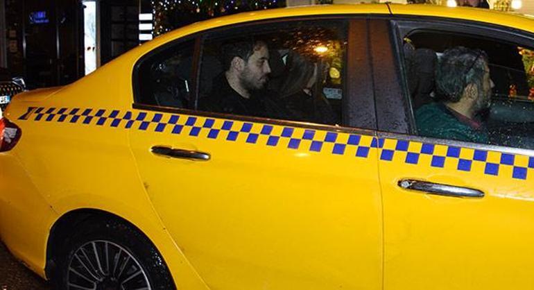Magazin muhabirlerine görüntü vermemek adına taksinin arka koltuğunda yüzünü saklamak isteyen Derin Talu, bu çabasında başarısız oldu.