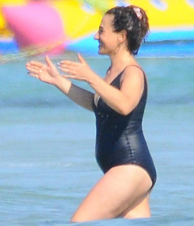 Arkadaşlarının çocuklarıyla vakit geçiren ve onları dalgalı denizde havaya uçurup indiren çift, kendileri de en az çocuklar kadar neşeliydi.