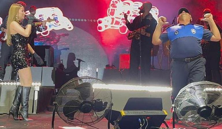 Seyircilerden alkış aldıkça daha hararetli dans eden zabıta, sahnede bir süre Uluğ'a eşlik etti. Ünlü popçunun Kenan Doğulu'nun 'Çakkıdı' parçasını söylediği sırada Hasan Ur'un sahnede zabıta kıyafetleri ile ritmik oynaması beğeni topladı.
