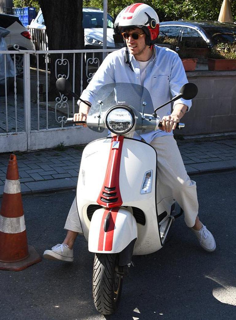 Basketbol Süper Ligi'nde mücadele eden Büyükçekmece takımında forma giyen 1,98'lik Caner Erdeniz'i vespa marka motorunun üzerinde görenleri tebessüm etti.