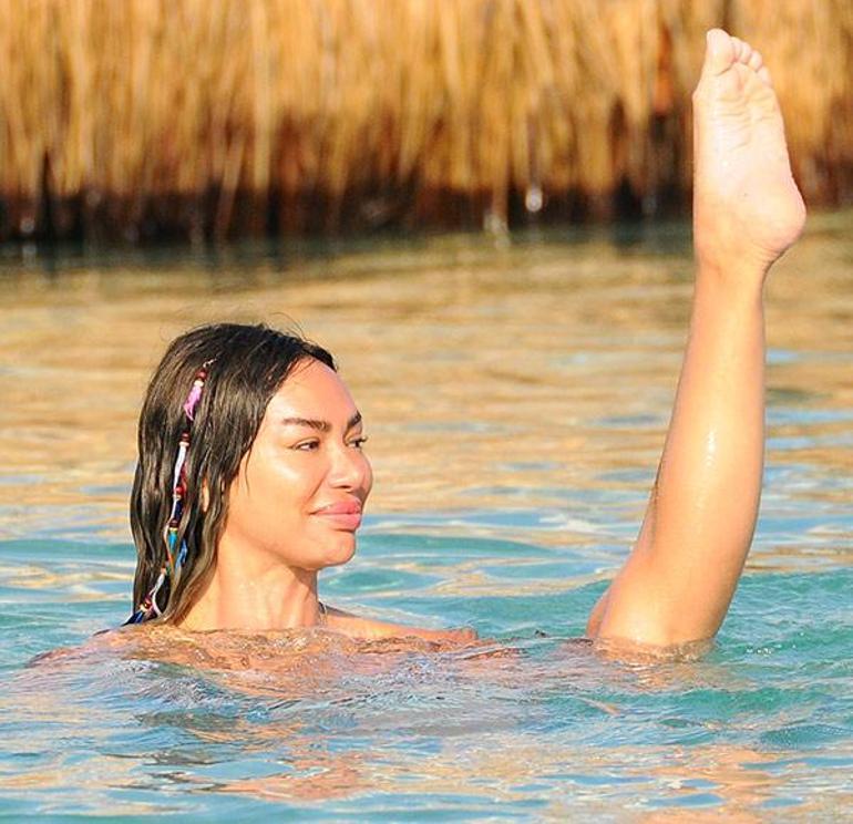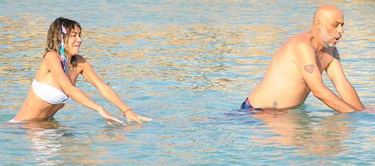 Mekanda önce güneşlenip sohbet eden ikili, daha sonra yüzmek için denize girdi. Suyun soğuk olması nedeniyle biraz üşüyen Kınalı, denizin içinde bale yapıp, ısınmaya çalıştı.
