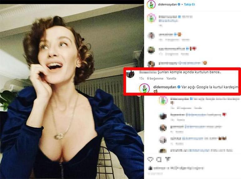 Bir takipçisi, Didem Soydan'ın iddialı pozlarına "Şunları komple açın da kurtulun" yorumunu yazdı. Didem Soydan, söz konusu mesaja yanıtında, "Var açığı Google'la kurtul kardeşim" ifadelerini kullandı. Bu sözler sosyal medyada kısa sürede gündem oldu.