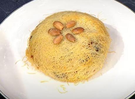 Çukur kısma pilav yerleştirilir ve üzeri tekrar kadayıfla kapladıktan sonra önceden ısıtılmış 200 derecedeki fırında kadayıflar nar gibi kızarana kadar pişirilir.