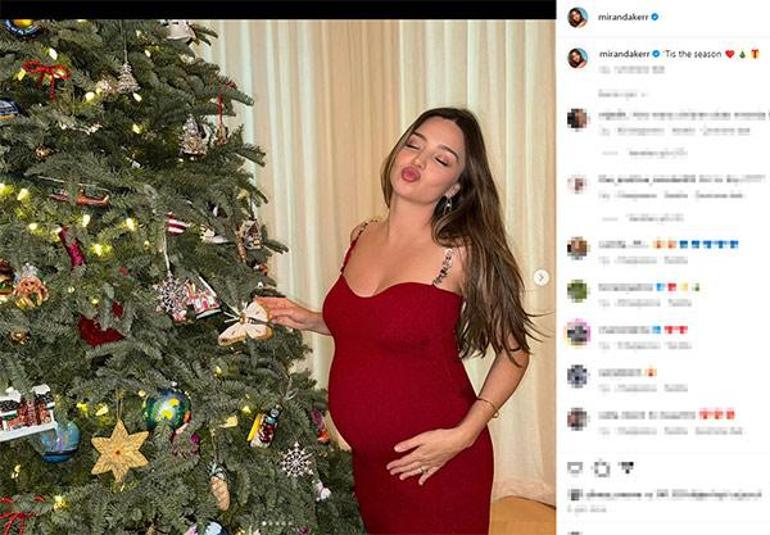 Bebeğini kucağına almak için sabırsızlanan Miranda Kerr'den karnı burnunda bir fotoğraf daha geldi. Kırmızı bir elbise giyen ünlü isim, yılbaşı ağacının yanında poz verdi. Hediye paketi ve kalp emojileriyle birlikte paylaşım yapan Miranda Kerr'in karnının iyice büyüdüğü görüldü.