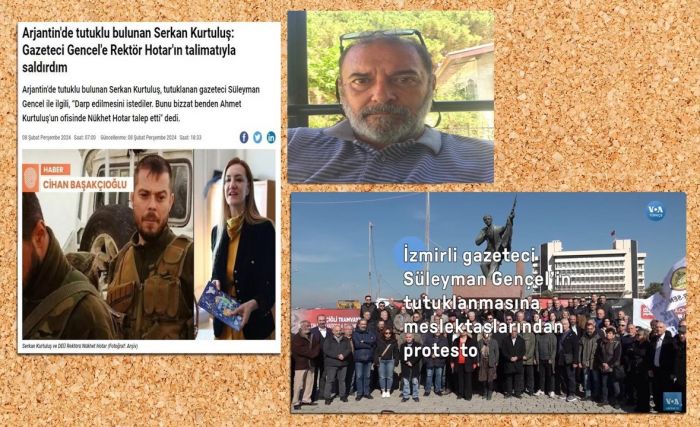 ; büyükelçi unvanı verilerek de ödüllendirildi.Gençel’in cezaevine atılmasını protesto eden İzmirli gazeteciler, geçen hafta bir de gözaltı furyasıyla karşılaştı. Jinnews muhabiri Melike Aydın, Mezopotamya Ajansı (MA) muhabirleri Delal Akyüz, Tolga Güney ve Semra Turan’ın yanı sıra Gazete Duvar muhabiri Cihan Başakçıoğlu da gözaltına alındı. İki gün sonra adli kontrol koşuluyla serbest bırakıldılar.