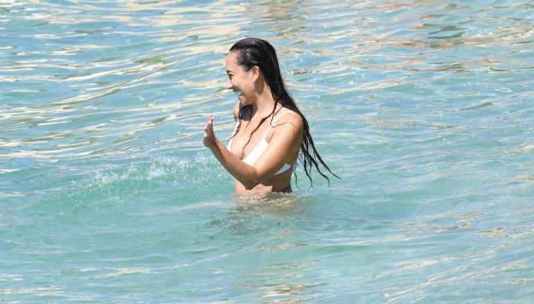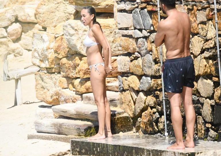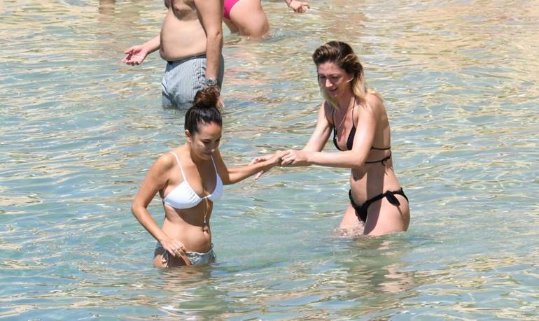 Bir süre deniz kenarında arkadaşları ile sohbet edip denizde bir birbirlerine su atarak şakalaştılar. Sarışın, kıyı kenarına kadar yüzerek deniz içinde yaptığı su dansı ile dikkat çekti.