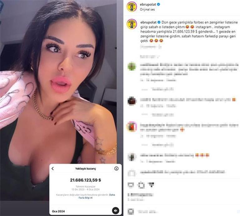 Sosyal medyada yayınladığı iddialı pozlarıyla adından sıkça söz ettirmeyi başaran Ebru Polat, bu kez yayınladığı video ile hesabına yanlışlıkla yatırılan dudak uçuklatan parayı paylaştı.