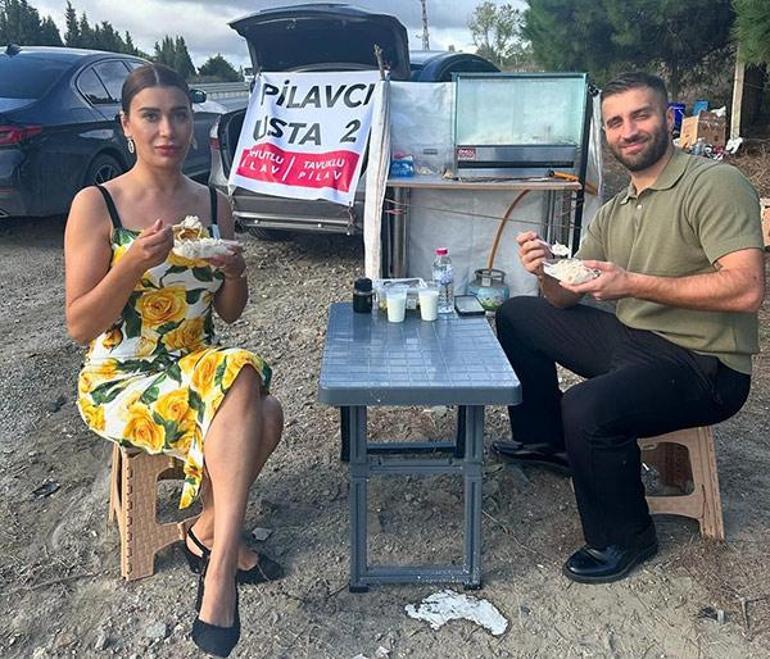 Lüks bir restorana gitme hayali kuran Ebru Şancı, seyyar pilavcıyı görünce neye uğradığını şaşırdı. Karşılıklı pilav yiyen ikili o anları ölümsüzleştirdi.