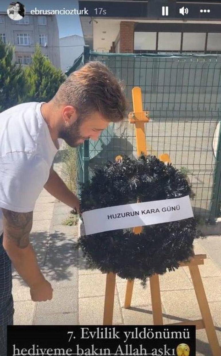 Ünlü çift, 7 Eylül'de yedinci evlilik yıl dönümlerini kutlamıştı. Bu özel günle ilgili paylaşım yapan Şancı, eşinin üzerinde "Huzurun kara günü" yazan, siyah bir çelen taşıdığı anları Instagram'da yayınlamıştı. Ebru Şancı, "Yedinci evlilik yıl dönümü hediyeme bakın, Allah aşkına" notuyla paylaştığı videoda; "Bu ne? Bu nedir açıklar mısın?" derken duyulmuştu.