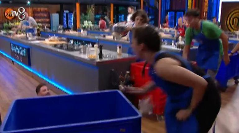Tabaklarını yetiştirmeye çalışan yarışmacılardan Onur, koşuştururken ayağı kaydı çok kötü düştü. Düşerken de plastik sepete çarptı, çarptığı sepet de sert bir şekilde Beril'e çarptı. Onur ve Beril şans eseri yara almadan kurtuldu ve tabaklarına devam etti.