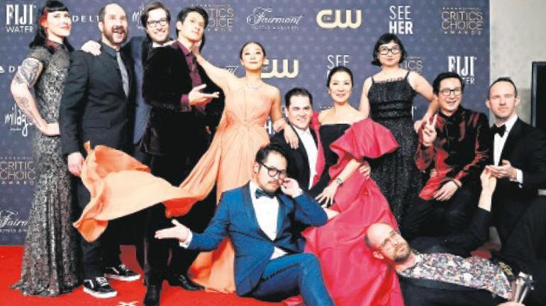 ‘Everything Everywhere All at Once’ ekibi, ‘En İyi Film Ödülü’nü coşkuyla kutladı. Törende ‘En İyi Orijinal Senaryo’ ve ‘En İyi Yönetmen’ ödüllerini alan Daniel Kwan ile Daniel Scheinert, oyuncular Harry Shum Jr., Stephanie Hsu, Michelle Yeoh ve gecede ‘En İyi Yardımcı Erkek Oyuncu’ seçilen Ke Huy Quan ile kamera karşısına geçti. Yeoh’nun Carolina Herrera imzalı elbisesi dikkat çekerken, Paul Rogers ise aynı film ile ‘En İyi Kurgu’ ödülünün sahibi oldu.