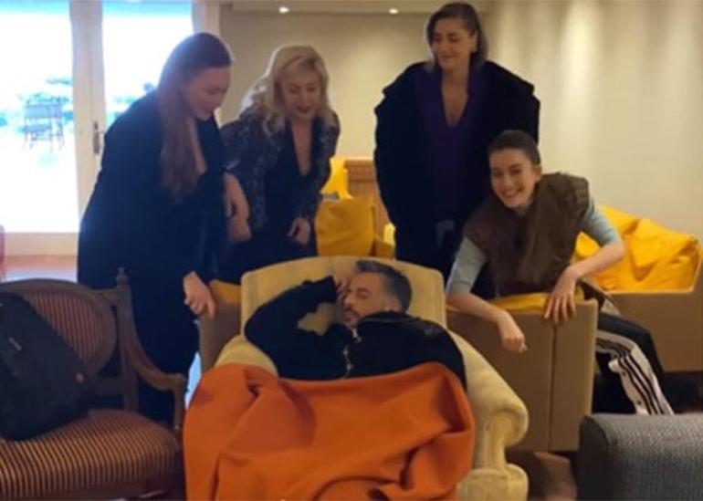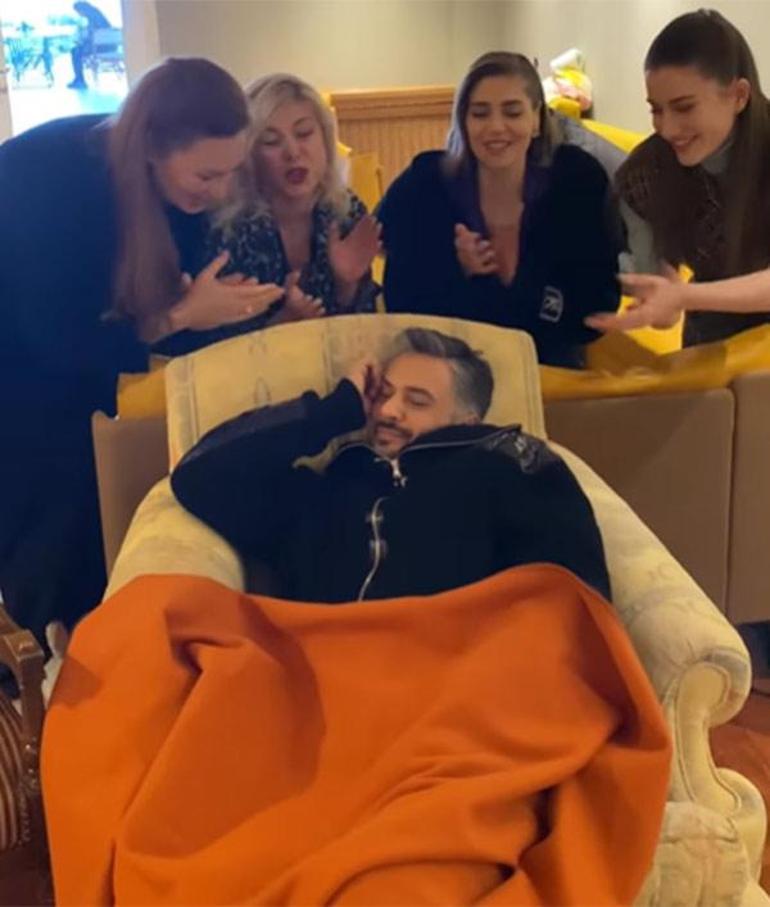 Gözde Kansu ve Öznur Serçeler, Beril Pozam ve Gülçin Santırcıoğlu'nun, hep bir ağızdan söyledikleri 'Su Gibisin' parçası eşliğinde rol arkadaşlarına sürpriz yapması dikkat çekti. Kısa süreli şaşkınlık yaşayan Altuğ'un uyku molası gülümsemeyle sona erdi.