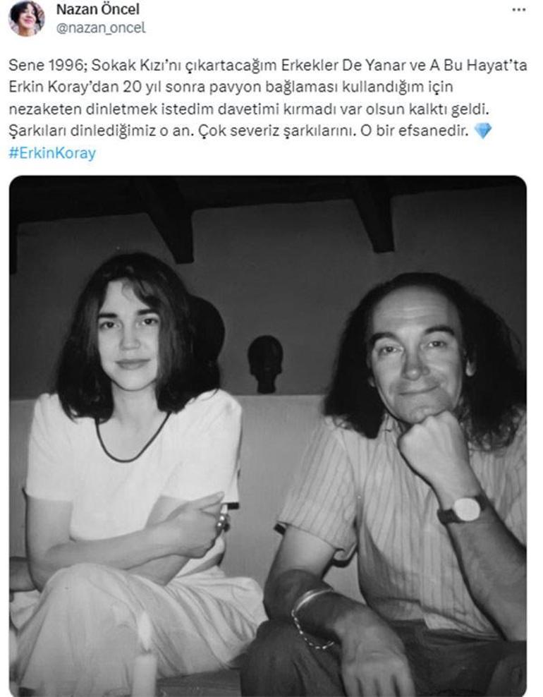 1996 yılında çıkardığı 'Sokak Kızı' albümünden parçaları Erkin Koray'a dinletip görüşlerini alan Nazan Öncel, usta sanatçı ile bir anısını paylaştı.