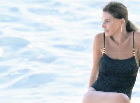 Oyuncu, şezlongta güneşlenmeyi tercih ederken, Sağyaşar yanına arkadaşlarını da alarak botla denize açıldı. -TOLGA BOZDUMAN