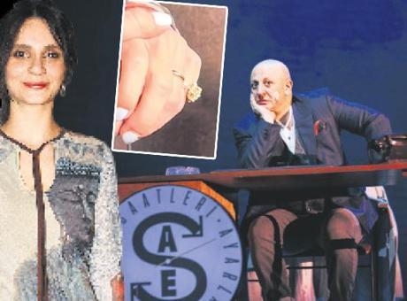 Alyansıyla dikkat çeken oyuncu, “Evet, olacak inşallah bir şeyler. Bir düğün habercisi olabilir” diyerek, güldü. -UMUT ÜNVER