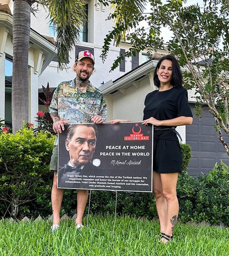 Eylül Öztürk, kozmetik şirketini büyütmek için Amerika’ya gitmişti. Fenomen, 30 Ağustos Zafer Bayramı’nı, evinin bahçesinde İngilizce 'Yurtda Sulh Cihanda Sulh' yazılı Atatürk posteriyle kutladı.