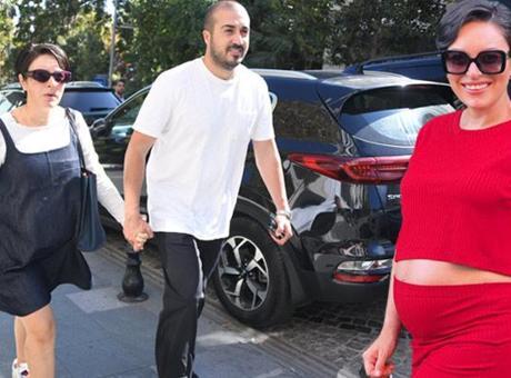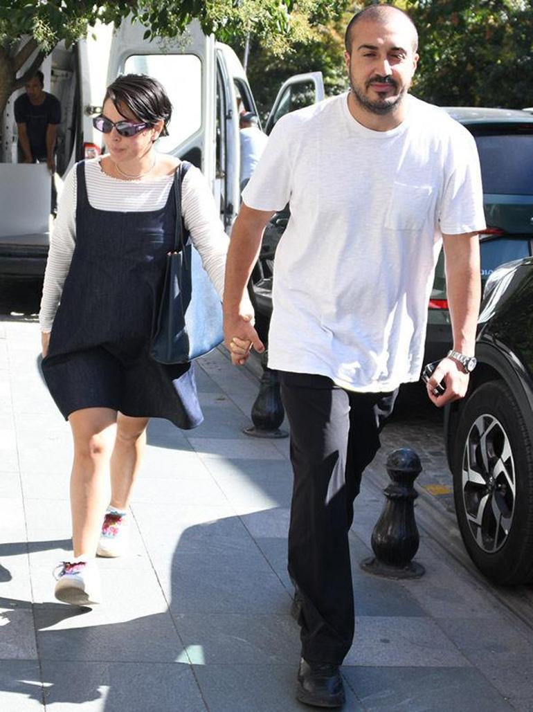 Yedi aylık hamile olan ve erkek bebek bekleyen Ezgi Mola, "Daha çok yanımda olmasını istiyorum" diyerek şakayla göndermede bulunduğu eşi Mustafa Aksakallı ile birlikte Nişantaşı'ndaydı.