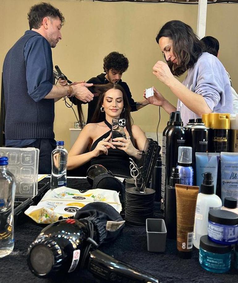Oyuncu çift birlikte kamera karşısına geçtikleri reklam filminin çekimlerine Kerem'i de götürdü. Evcen, kuliste çektiği fotoğrafı, "Set hatırası" notuyla Instagram hesabından paylaştı.