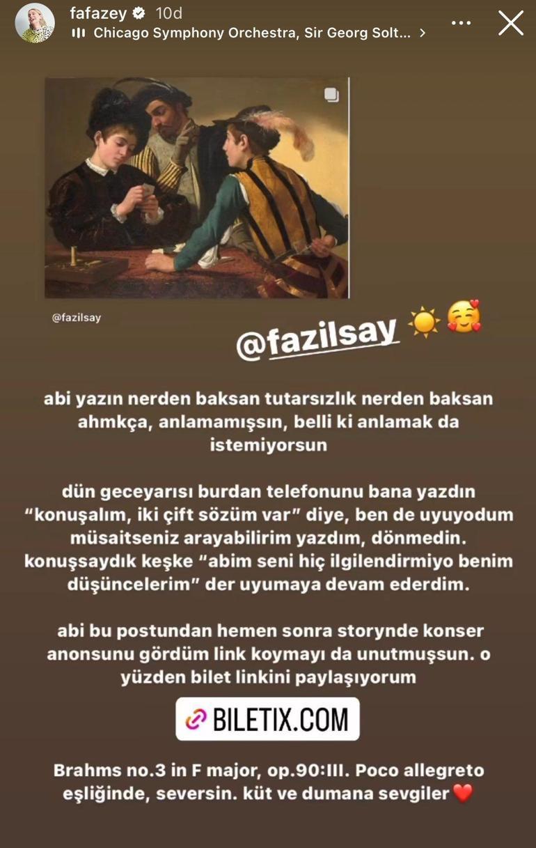 Dünyaca ünlü piyanist Fazıl Say, Farah Zeynep Abdullah'a yanıt vermekte gecikmedi. Instagram üzerinden yaptığı açıklamada Farah Zeynep Abdullah'a 'Haddini bilmek gerek' diyen sanatçı, Farah Zeynep Abdullah'ın gerçek sanattan anlamadığını belirtti. İşte Fazıl Say'ın o açıklaması: