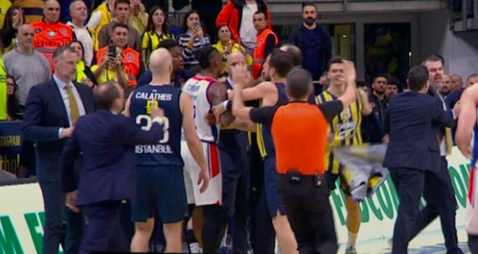 Turkish Airlines EuroLeaguein 33. haftasında Fenerbahçe Beko derbide Anadolu Efesi 103-86 mağlup ederken karşılaşmanın son saniyelerinde saha içinde gerginlik yaşandı.