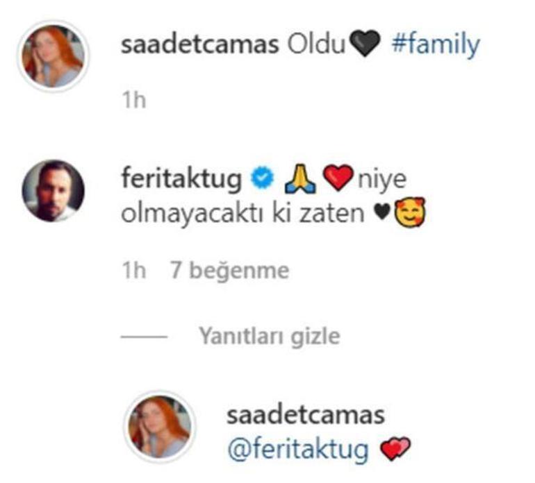 Sosyal medyada aşkını ilan eden Saadet Çamaş'ın kalp emojisi ile karşılık verdiği paylaşıma, takipçilerinden tebrik yorumları yağmıştı.