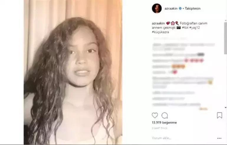 Azra Akın'ın Instagram hesabı üzerinden paylaştığı fotoğrafa "Fotoğrafları canım annem çekmişti. #tbt #yaş12 #küçükazra" notunu yazmıştı.
