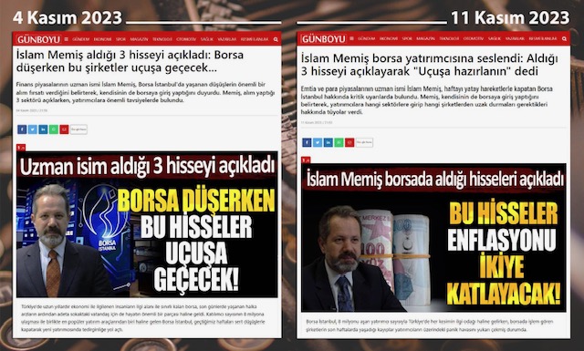 da aynı sitede kullanıldığını fark ettim. Yedi gün arayla yayımlanan iki haberin başlıkları ve görselleri tamamen aynıydı; içeriğinde çok az farklılık vardı.Yeniçağ grubuna ait bu sitede İslam Memiş’e atfedilen benzer analizler daha önce de defalarca yayımlanmış. Ne yazık ki, haber siteleri, emekliler gibi borsa ve finansman konularında da okur avlamak için bu tür manipülatif, uyduruk haberler yayımlayabiliyor. Biri yayımladığında onlarca site de kopyalayarak servise koyuyor. Haberciliğin düzeyini düşüren bu yöntemde gazetecilerden çok SEO’lar yani okur avlama uzmanları etkili. Gazeteciliğin yeni sorunu…