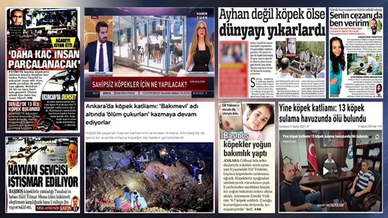 “Başıboş köpekler yoğun bakımlık yaptı”, “Sözde hayvansever böyle tehdit etmiş” haberlerini sürdüren Akşam ve Yeni Şafak da köpek cinayetlerini görmezden gelmeye devam ediyor. Habertürk TV’de Fevzi Çakır da sokak köpeklerine mama götürülmesi ile yoksulların et yiyememesini kıyaslayarak bu hayvanlara karşıtlığı körükledi.