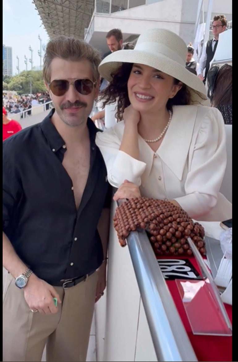 Aslı Bekiroğlu ve Furkan Palalı da Gazi Koşusu'nda objektiflere poz verdi. Bekiroğlu'nun şapkası dikkatleri üzerine çekti.
