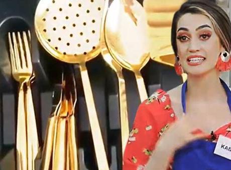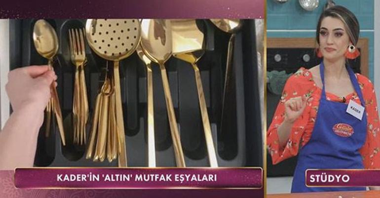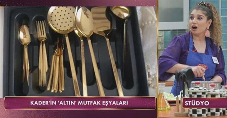 Yedi ay önce dünyaevine giren 23 yaşındaki Kader Gül’ün çeyizindeki saf altından yapıldığını iddia ettiği çatal bıçak takımı Gelinim Mutfakta stüdyosunda büyük olay yaratacak.