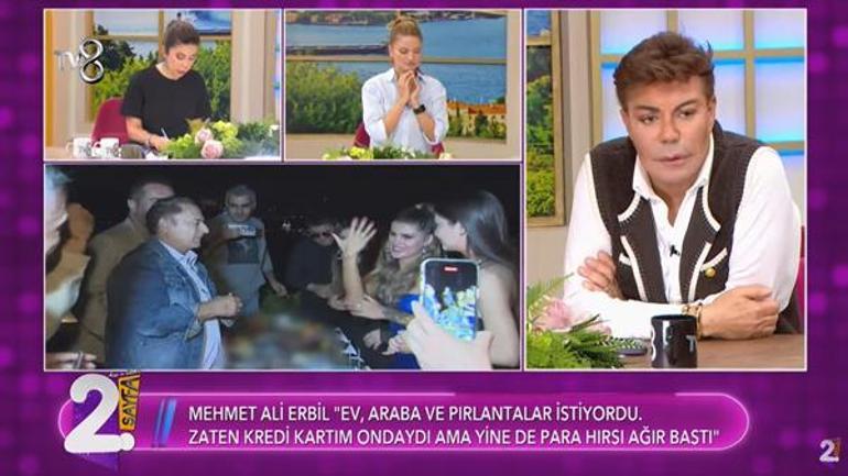 Sunuculardan Gülşen Yüksel, Mehmet Ali Erbil'in ayrılık sebepleriyle ilgili "Ev, araba ve pırlatalar istedi. Zaten kredi kartım ondaydı ama para hırsı ağır bastı. Giderken 180 bin TL'lik değerindeki tektaş yüzüğü de aldı. Sürekli 'Ben onurlu kadınım, kimseden bir şey almam' demesine rağmen giderken yüzüğü istedim ancak vermedi" dediğini aktardı.