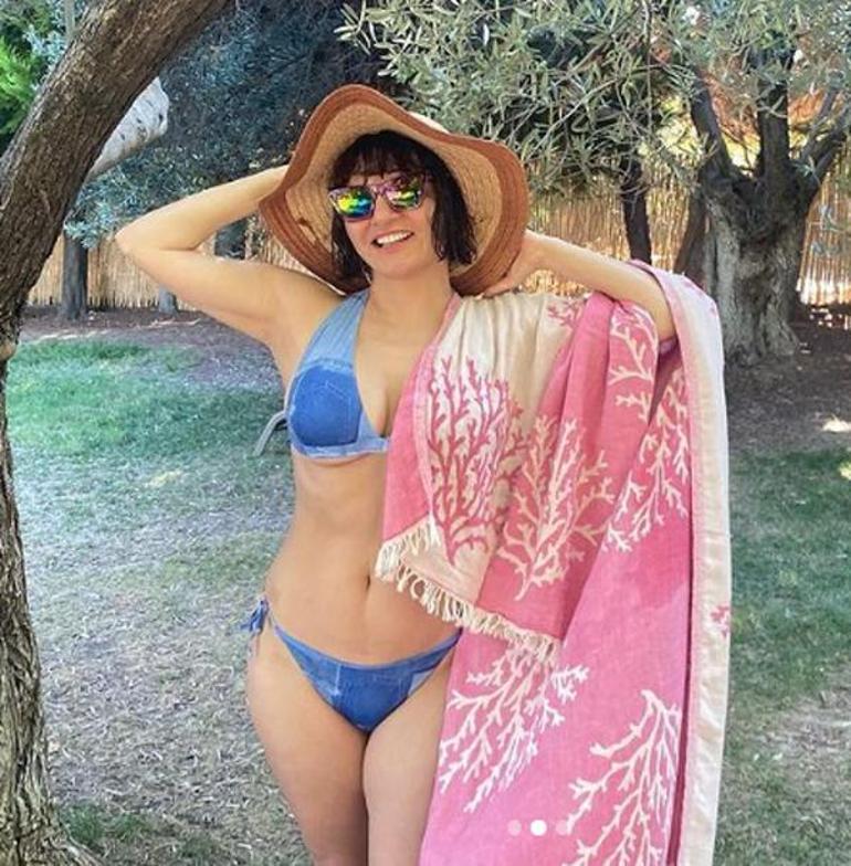 Bikiniyle kamera karşısına geçen Göksel, peş peşe yayınladığı karelerine "Yaz, dondurma, kedi ve ben... Canım Ege'me saygımla geldim" mesajını yazdı.