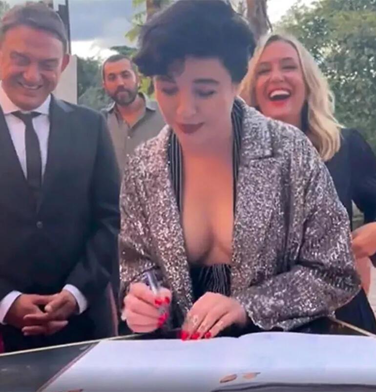 Gonca Vuslateri, geçtiğimiz haftalarda yakın arkadaşı Engin Özmen ile Esen Tunç'un Emirgan'da bir mekanda gerçekleşen düğününde nikâh şahidi olmuştu. Oyuncu, ünlü sunucu Saba Tümer'in de katıldığı düğünde yaptığı 'boşanma' esprisi ile adından söz ettirmişti. Derin göğüs dekolteli elbisesiyle dikkat çeken Vuslateri, şahit olarak nikâh defterine imzayı atarken, "Çok seviyorum bu defteri; bir kere gördüm, boşandım! Şimdi tekrar görünce duygulandım. Nereye atıyorum imzayı? Daha önce bir üst kısma atmıştım imzayı, yavaş yavaş aşağı iniyorum" sözleriyle konukları kahkahaya boğmuştu.