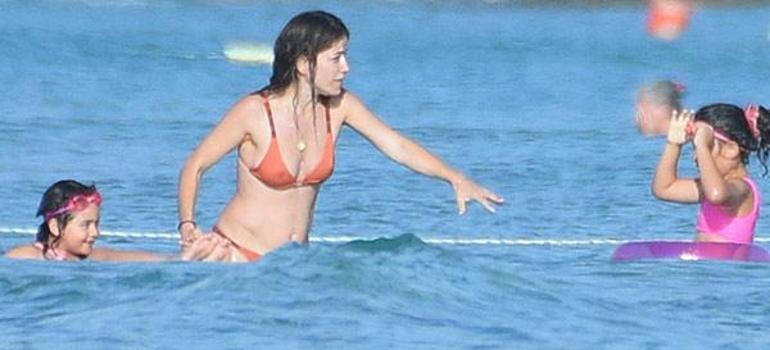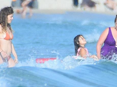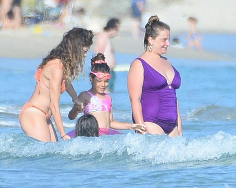 Kızı Mercan'la denize giren Gözde Kocaoğlu, Caner Erkin-Şükran Ovalı çiftinin kızları Mihran Ela’yı da yanlarına alarak, suyun içinde vakit geçirdi.