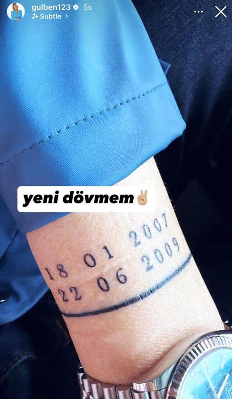 Instagram hesabından paylaşım yapan Gülben Ergen koluna iki farklı tarih yazdırdı. Bir tarih 18 Ocak 2007'ye diğer tarih 22 Haziran 2009'a aitti.