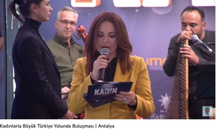 - AKP Antalya Kadın Kolları’nın düzenlediği ve Cumhurbaşkanı Erdoğan’ın da katıldığı “Kadınlarla Büyük Türkiye Yolunda” programını 360 TV’den Beyza Hakan’ın, hem de “Gazeteci olarak şeref duydum” diyerek sunması gazetecilik yanlışıydı.