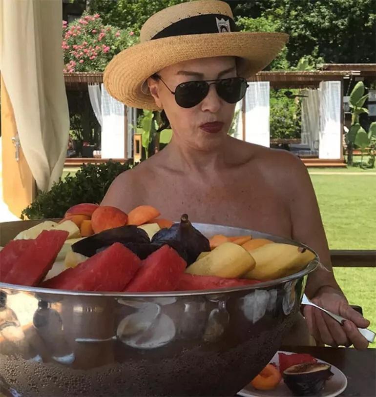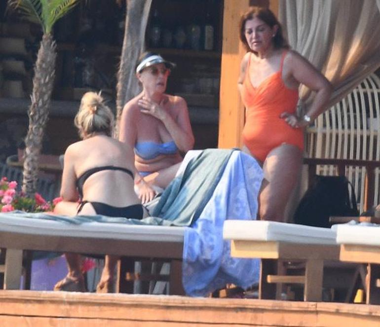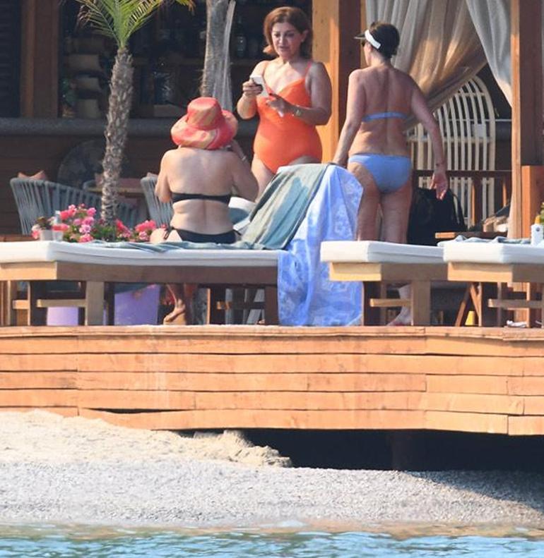 Arkadaş gurubuyla konakladığı otelin plajına inen ünlü oyuncu, güneşin tadını çıkarırken, ilerlemiş yaşına rağmen bikini tercih etti.