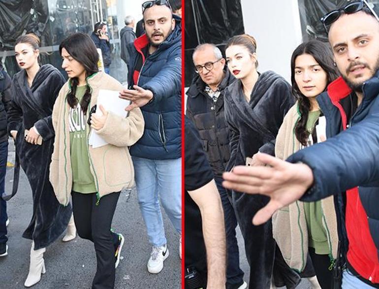 Kendisine eşlik eden görevlilerin görüntü alınmasını engellemeye çalıştığı oyuncu, hızlı adımlarla yakındaki bir binaya girerken; bu sırada basın mensupları ile set çalışanları arasında gerginlik yaşandı.