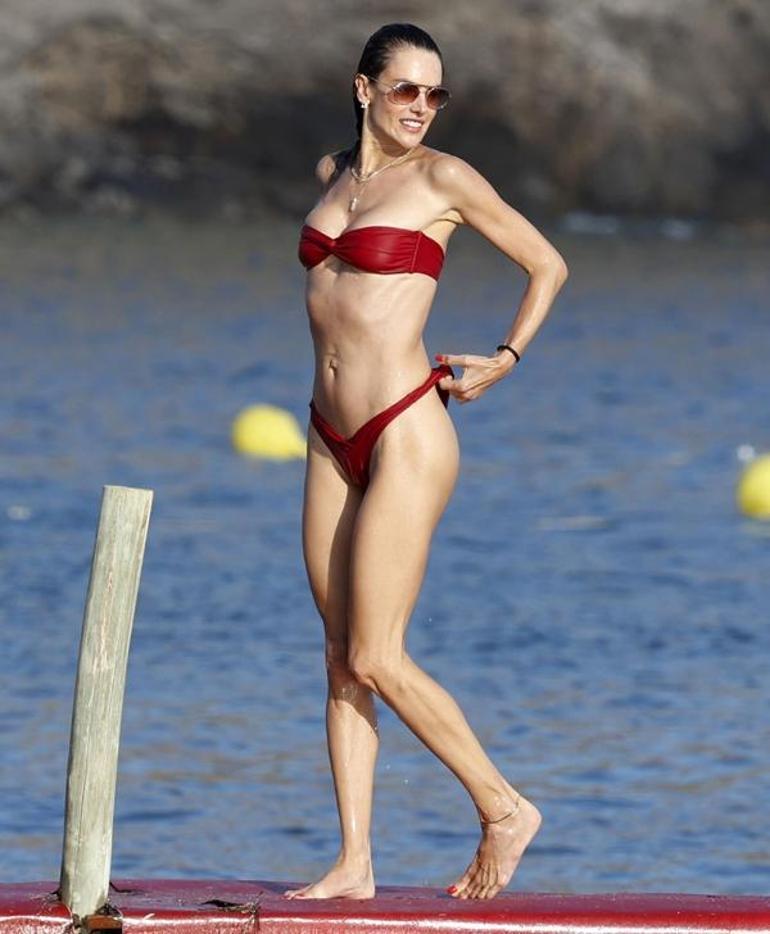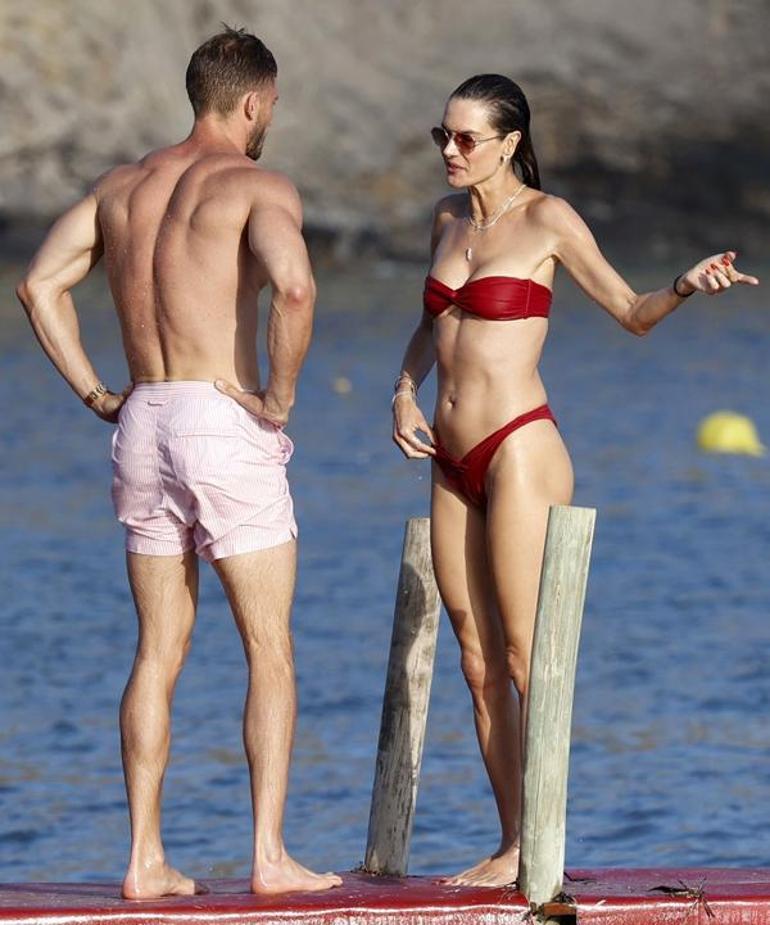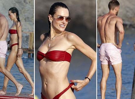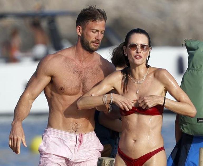 Kırmızı bikinisi ve fit fiziği göz kamaştıran Alessandra ile kaslı vücuduyla dikkat çeken Alexander, birlikte denize girerek serinlediler.