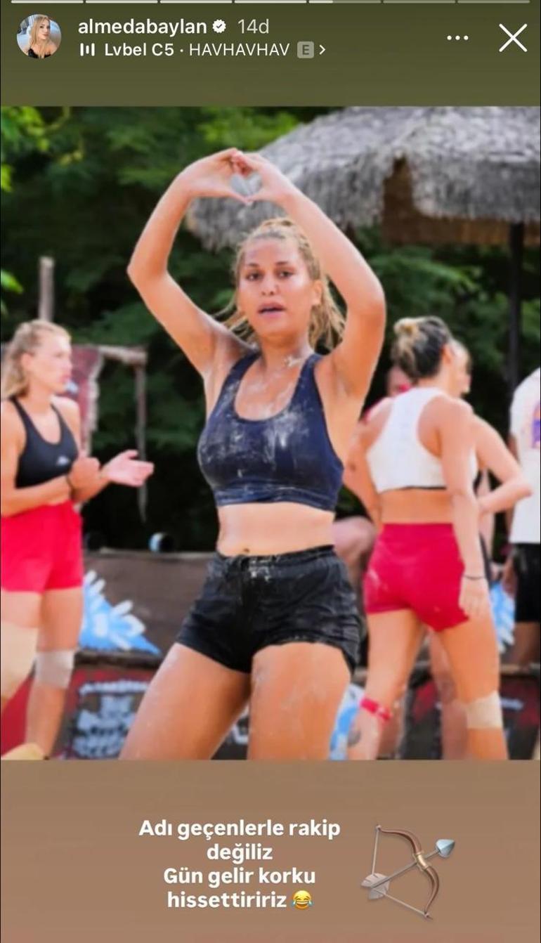 Almeda, sosyal medyadaki paylaşımlarıyla adından söz ettirmeye devam ediyor. Instagram hesabından parkurdaki galibiyet sevincini paylaşan Almeda Baylan, ''Adı geçenlerle rakip değiliz. Gün gelir korku hissettiririz.'' ifadelerini kullandı. Paylaşımda asıl dikkat çeken kısım ise Baylan'ın gönderide kullandığı şarkı seçimi oldu.