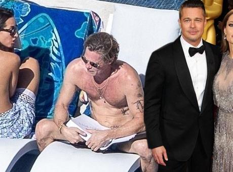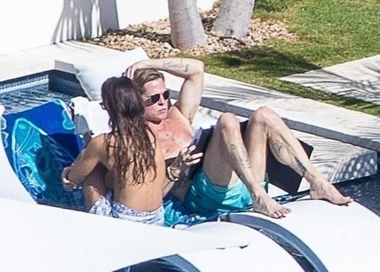 BRAD PITT'İN YANINDA ÜSTSÜZ GÜNEŞLENDİ