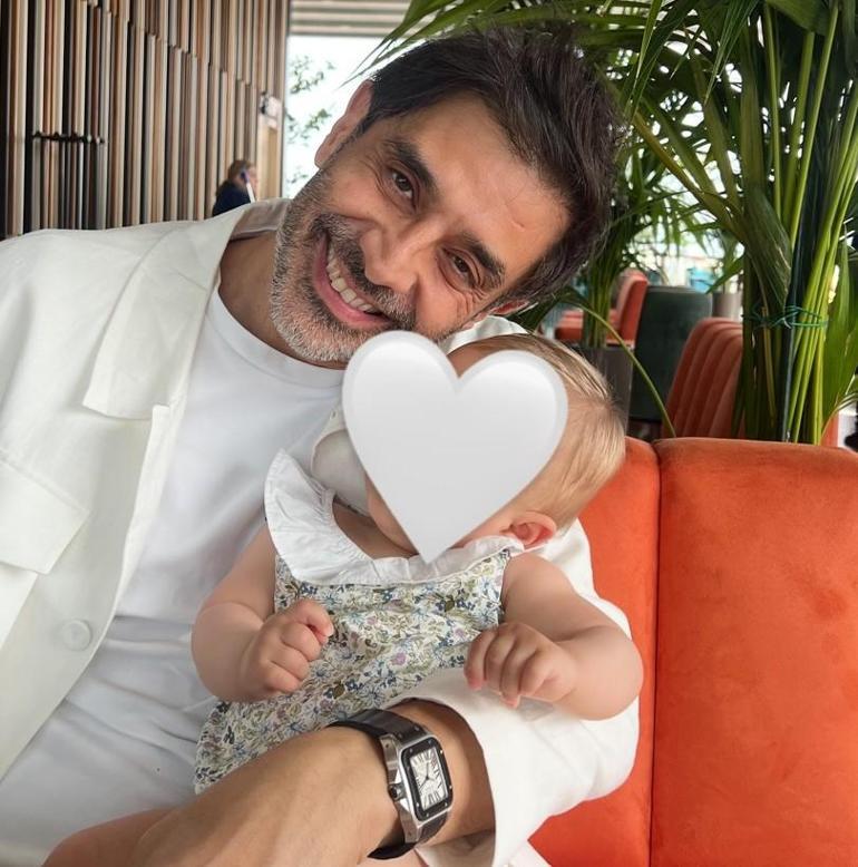 Oyuncu, nazar değer korkusuyla bebeğinin yüzünü kalp emojisiyle kapatarak paylaştı.